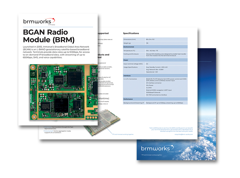 The BRM enables Inmarsat Value Added Manufacturer (VAM) Partners to integrate BGAN connectivity into their User Terminals